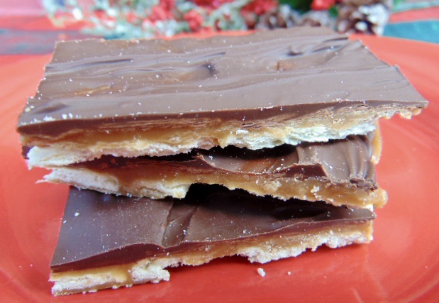 If you are looking for a sweet, last minute, homemade gift, this is the one. This addictive toffee candy is fantastic. It hits all my requirements, simple and delicious. Don’t let the toffee intimidate you because it couldn’t be easier since you are not making actual toffee. No candy thermometer required, and you probably already have the ingredients on hand.
